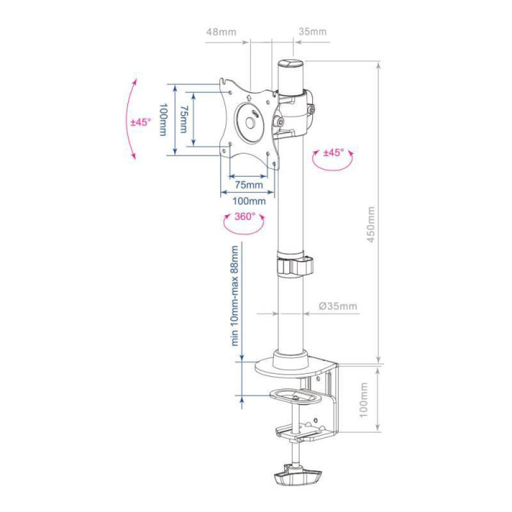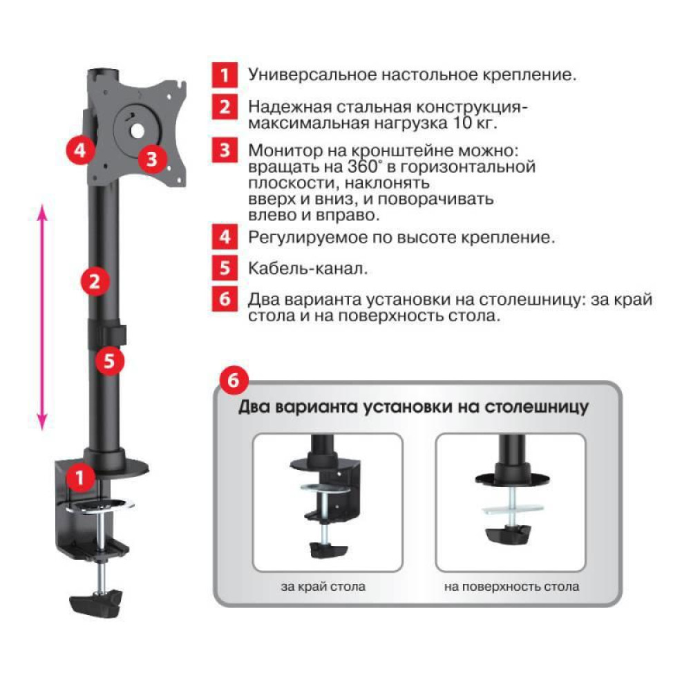 Кронштейн для мониторов Arm Media LCD-T41 черный 15"-32" макс.10кг настольный поворот и наклон верт.перемещ.