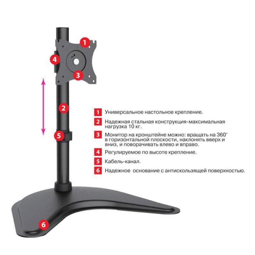 Кронштейн для мониторов Arm Media LCD-T51 черный 15"-32" макс.10кг настольный поворот и наклон верт.перемещ.