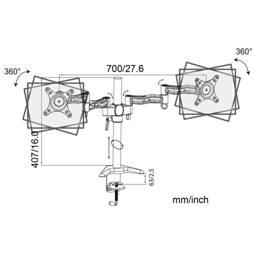 Кронштейн для мониторов Cactus CS-VM-D08-BK черный 13"-27" макс.8кг настольный поворот и наклон