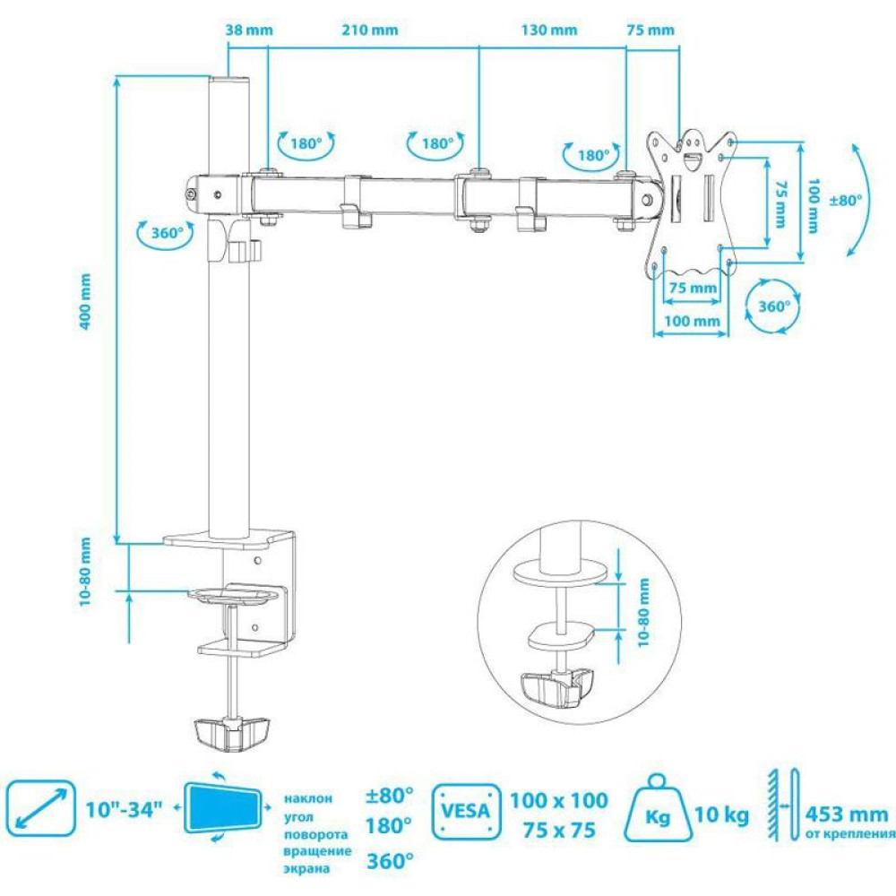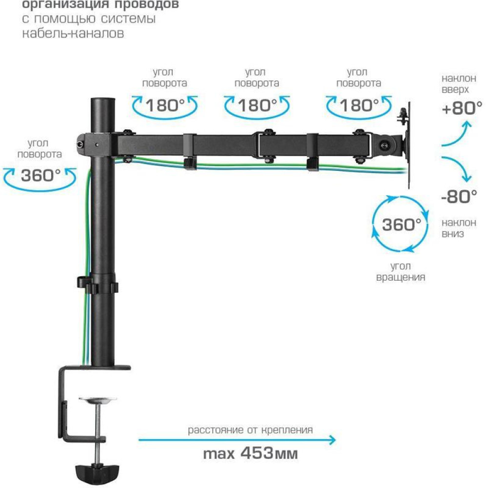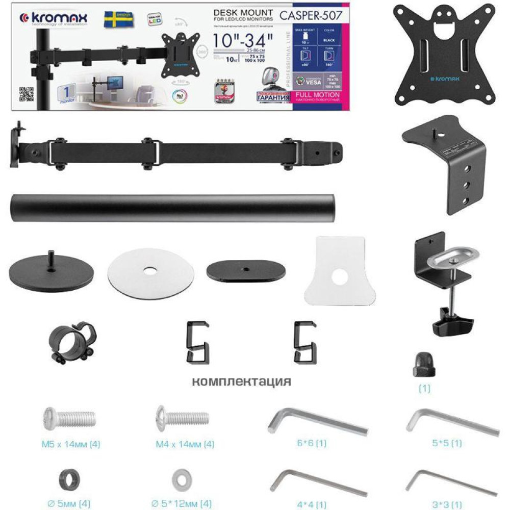Кронштейн для мониторов Kromax CASPER-507 черный 10"-34" макс.10кг настольный поворот и наклон