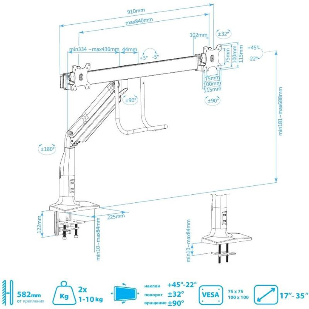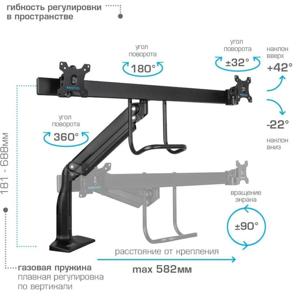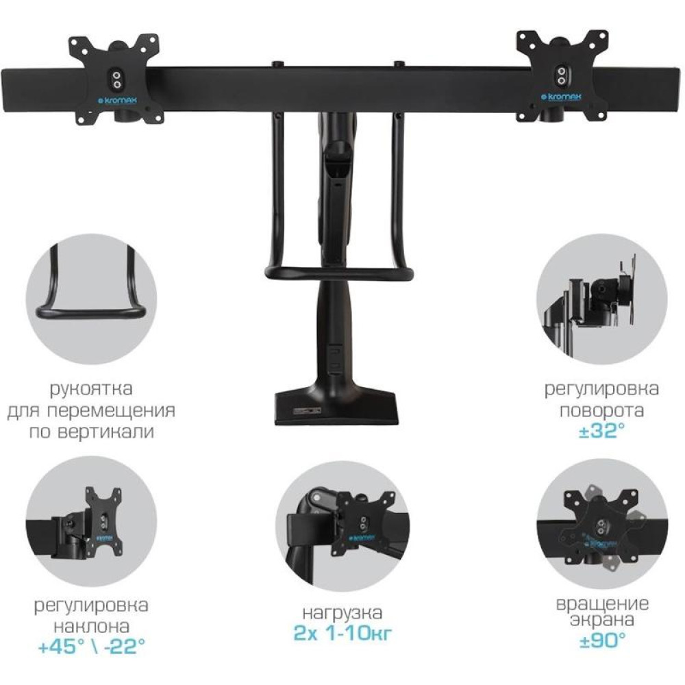 Кронштейн для мониторов Kromax OFFICE-20 черный 17"-35" макс.10кг настольный поворот и наклон