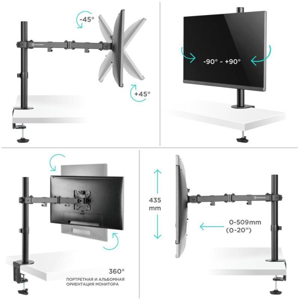 Кронштейн для мониторов Onkron D121E черный 10"-32" макс.8кг настольный поворот и наклон