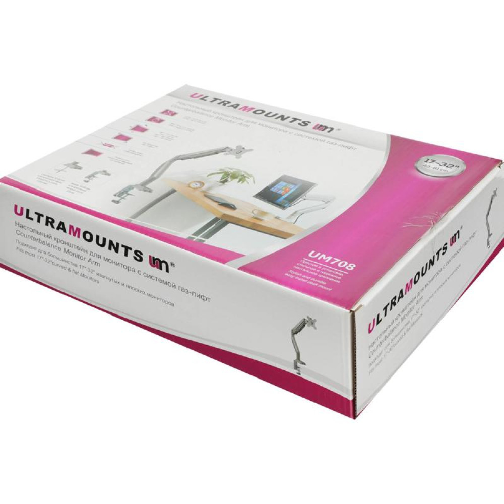 Кронштейн для мониторов Ultramounts UM708 серебристый 17"-32" макс.9кг крепление к столешнице поворот и наклон