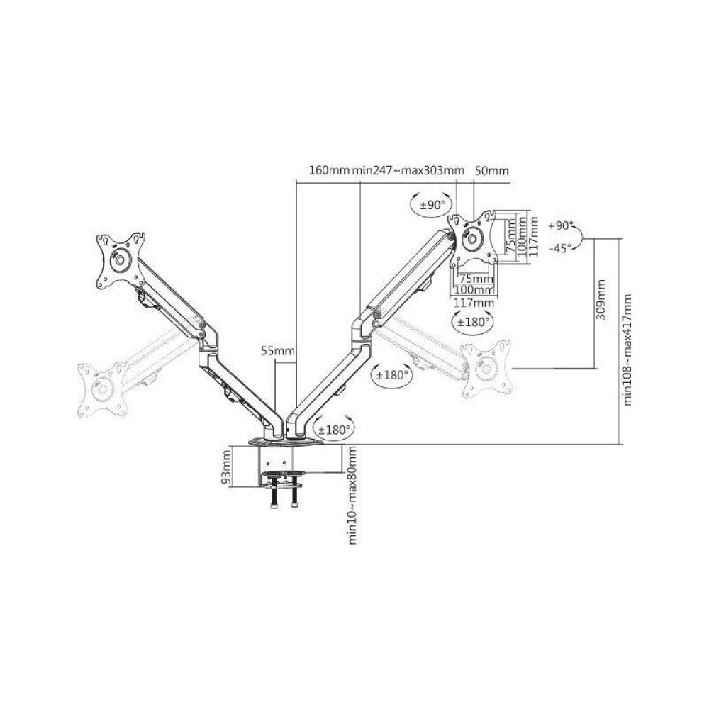 Кронштейн для мониторов Ultramounts UM729 черный 17"-27" макс.7кг крепление к столешнице поворот и наклон