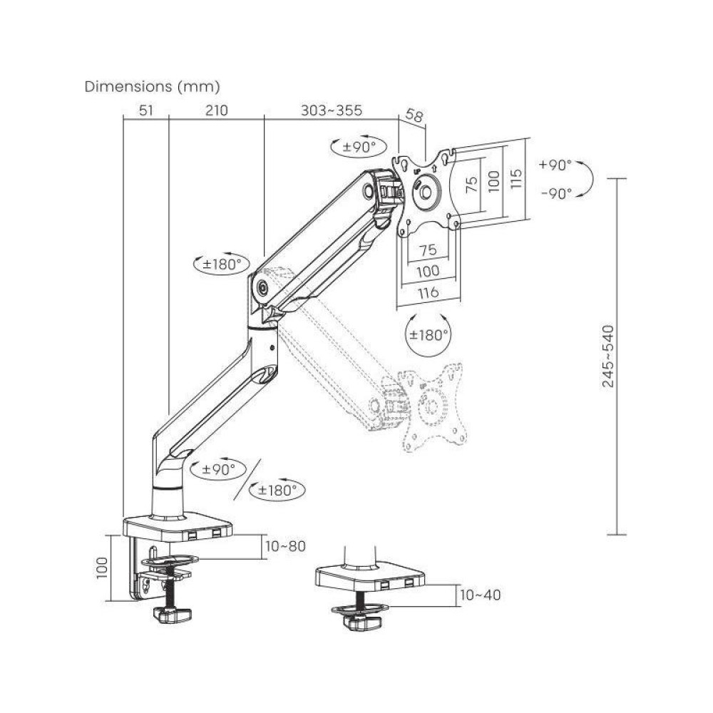 Кронштейн для мониторов Ultramounts UM730 черный 17"-45" макс.16кг крепление к столешнице поворот и наклон
