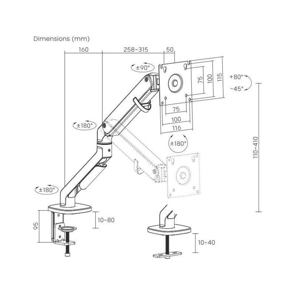 Кронштейн для мониторов Ultramounts UM734BL серый/черный 17"-27" макс.7кг крепление к столешнице поворот и наклон