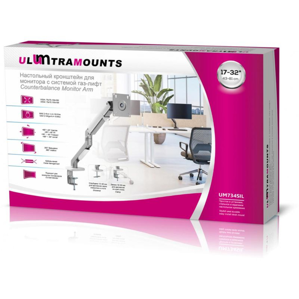 Кронштейн для мониторов Ultramounts UM734SIL серый/серебристый 17"-27" макс.7кг крепление к столешнице поворот и наклон