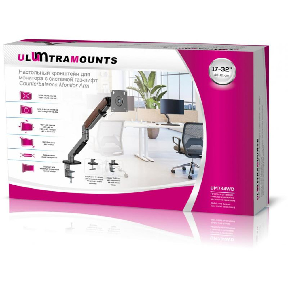 Кронштейн для мониторов Ultramounts UM734WD серый/коричневый 17"-27" макс.7кг крепление к столешнице поворот и наклон