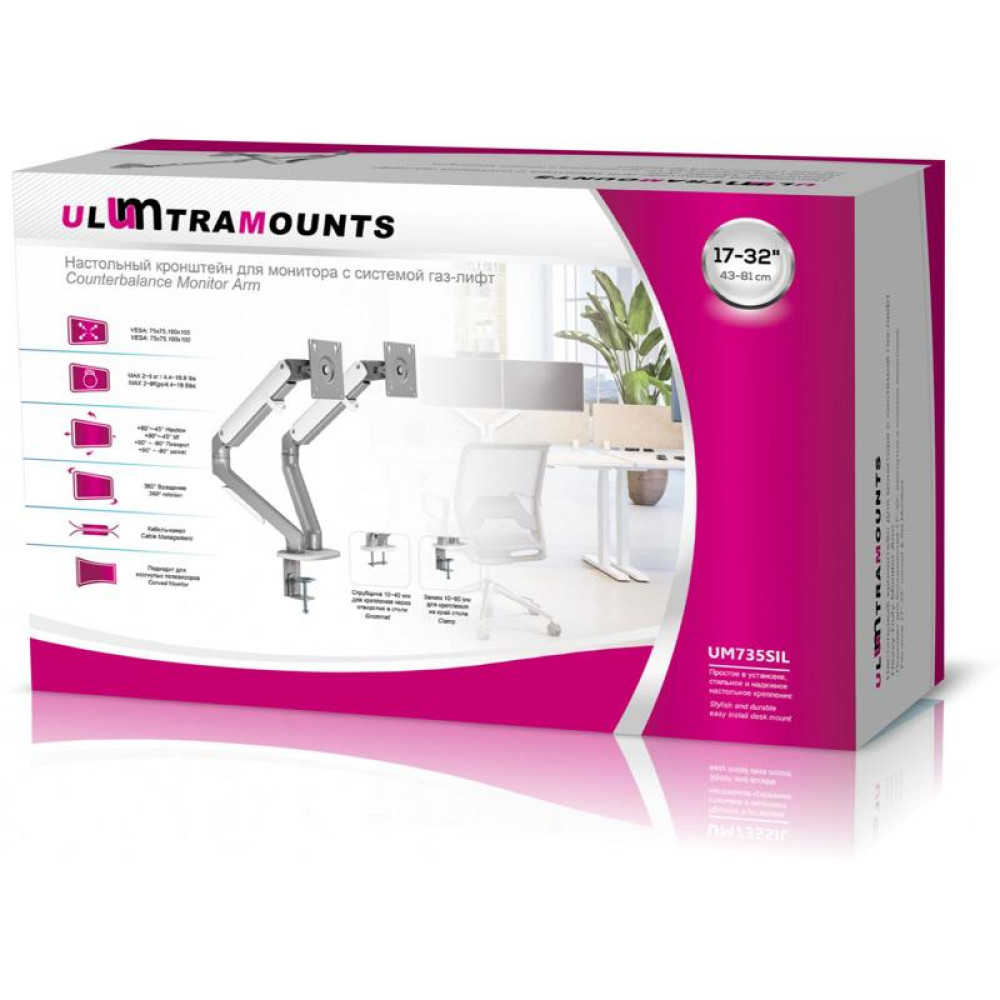 Кронштейн для мониторов Ultramounts UM735SIL серый/серебристый 17"-27" макс.7кг крепление к столешнице поворот и наклон