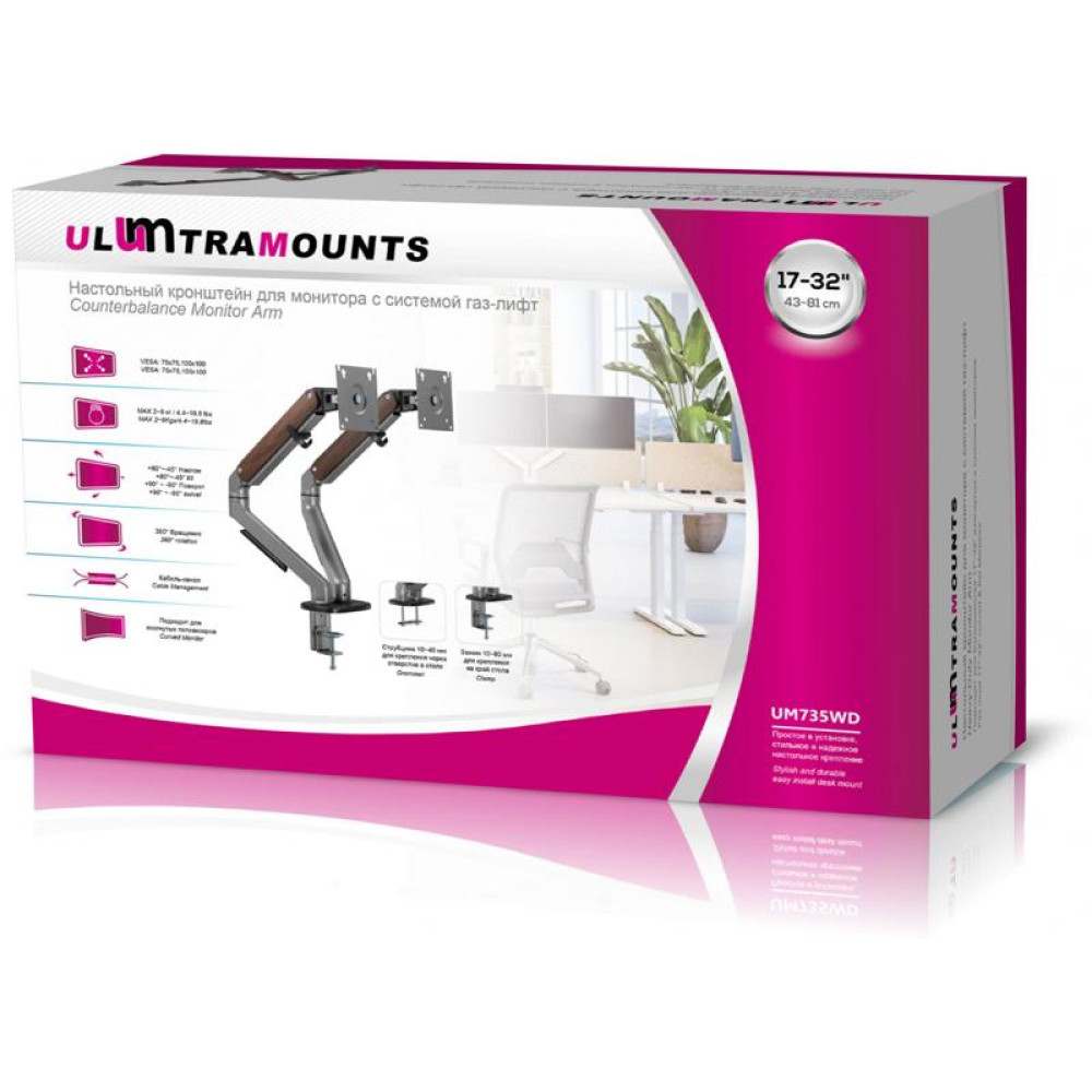 Кронштейн для мониторов Ultramounts UM735WD серый/коричневый 17"-27" макс.7кг крепление к столешнице поворот и наклон