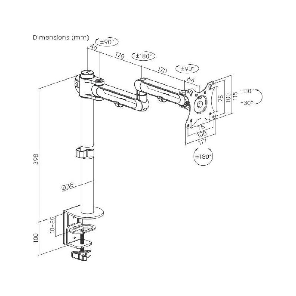 Кронштейн для мониторов Ultramounts UM736 черный 17"-32" макс.8кг крепление к столешнице поворот и наклон