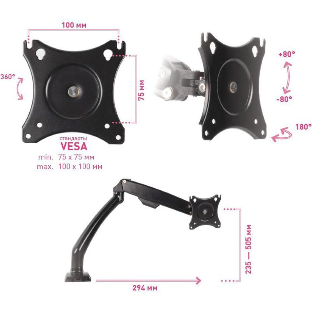 Кронштейн для мониторов ЖК Kromax OFFICE-8 черный 15"-34" макс.8кг настольный поворот и наклон верт.перемещ.