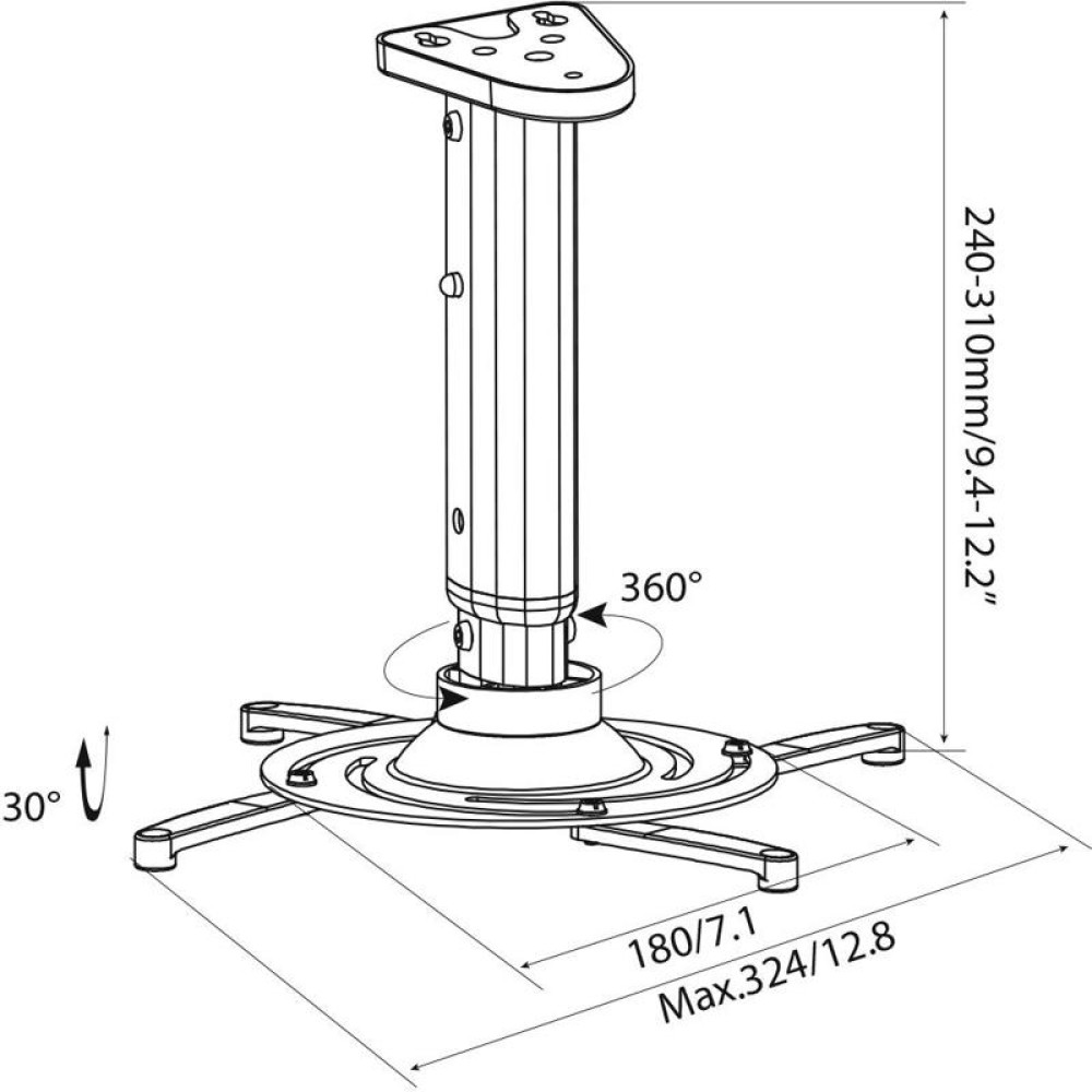 Кронштейн для проектора Cactus CS-VM-PR05M-AL серебристый макс.24кг потолочный поворот и наклон