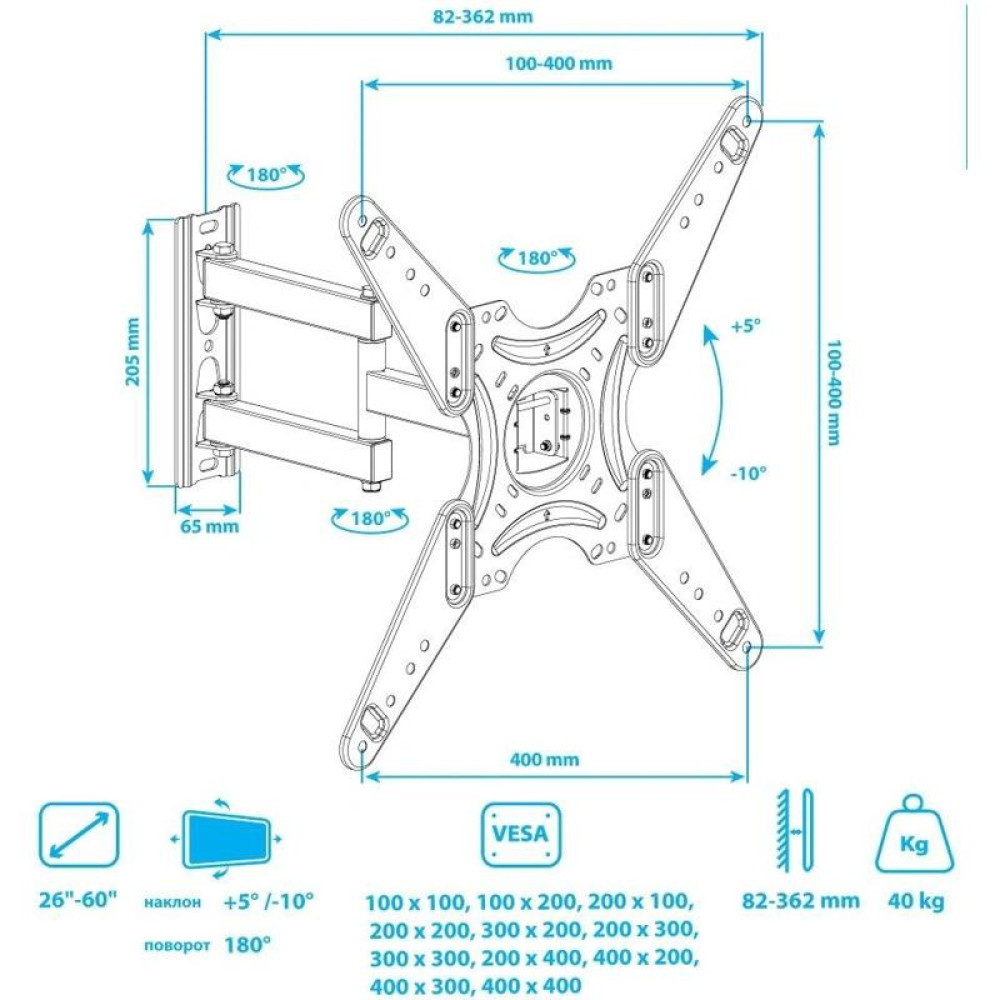 Кронштейн для телевизора Arm Media LCD-405 черный 26"-60" макс.40кг настенный поворотно-выдвижной и наклонный