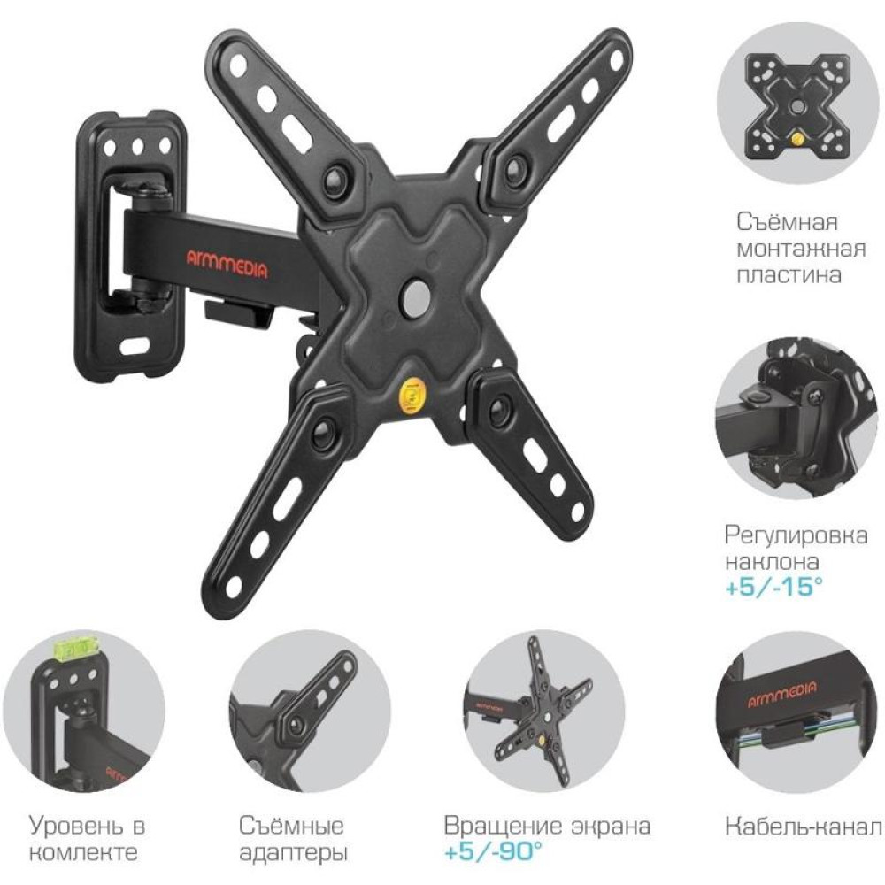 Кронштейн для телевизора Arm Media MARS-7 черный 20"-43" макс.25кг настенный поворотно-выдвижной и наклонный