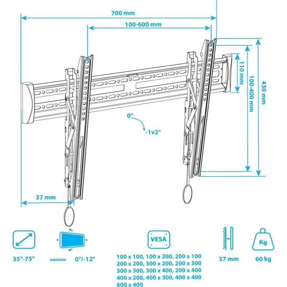 Кронштейн для телевизора Arm Media PLASMA-12 черный 35"-75" макс.60кг настенный наклон