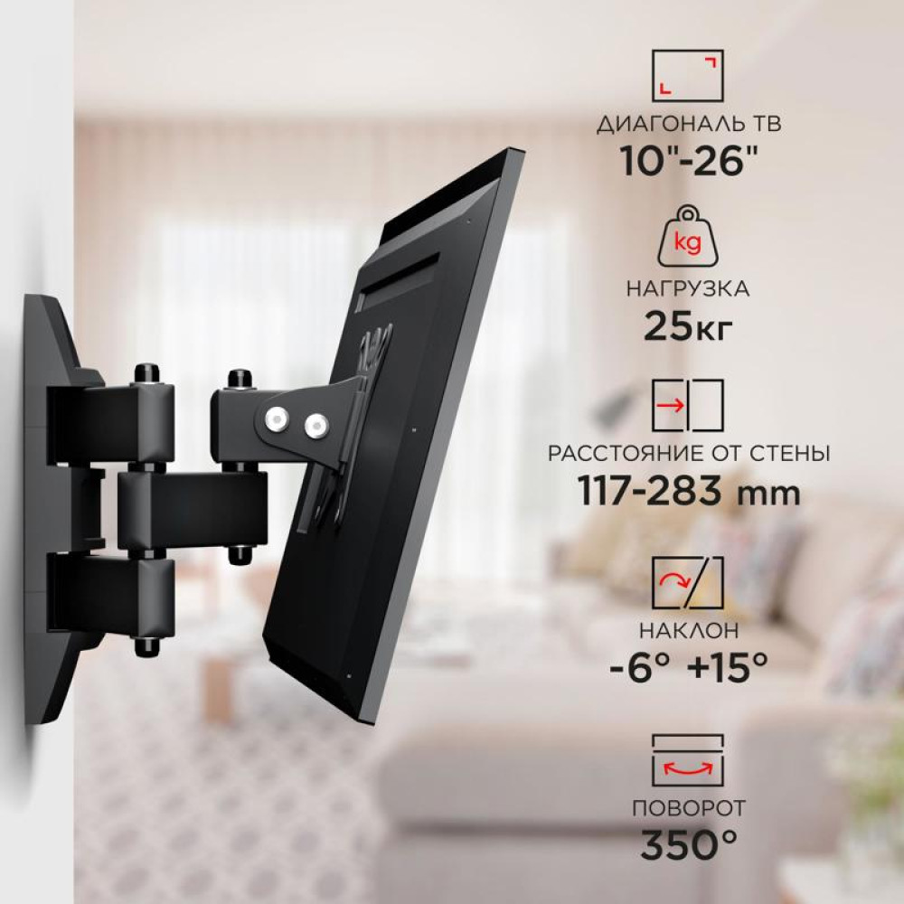 Кронштейн для телевизора Holder LCDS-5039 металлик 10"-26" макс.25кг настенный поворот и наклон