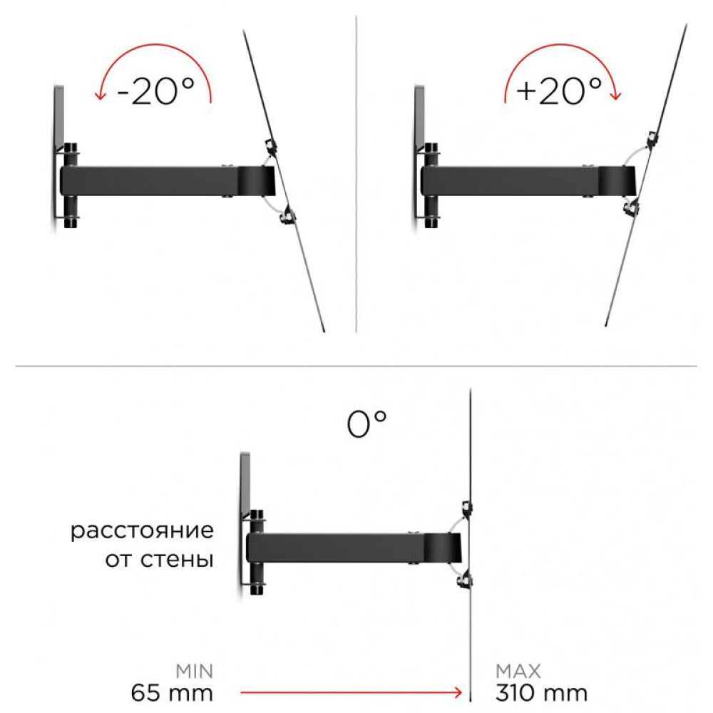 Кронштейн для телевизора Holder LCDS-5520-B черный 32"-55" макс.45кг настенный поворотно-выдвижной и наклонный
