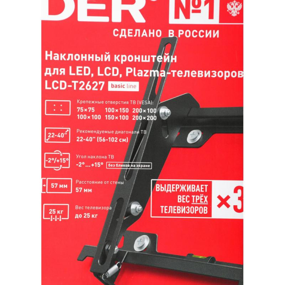 Кронштейн для телевизора Holder T2627-B черный 22"-40" макс.25кг настенный наклон