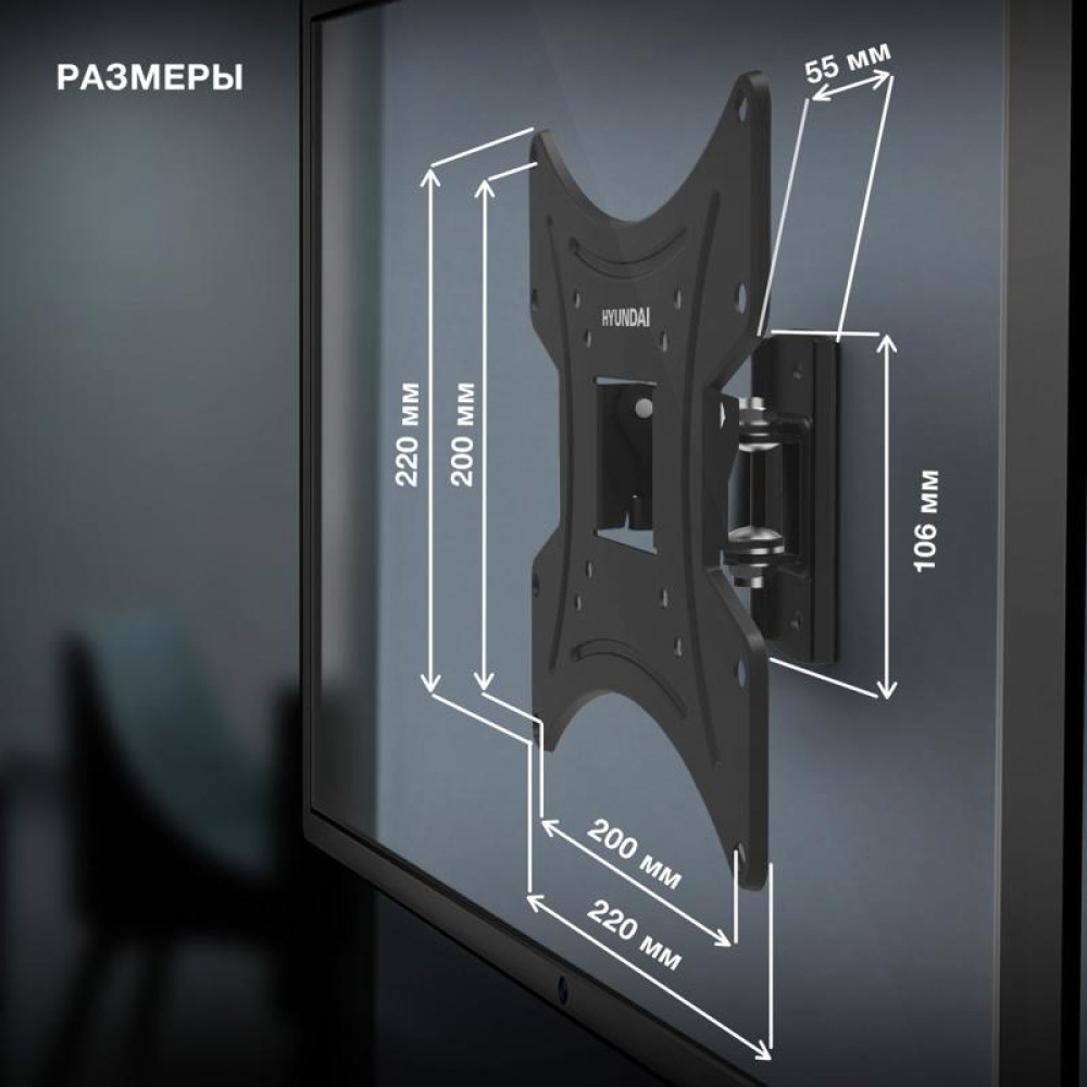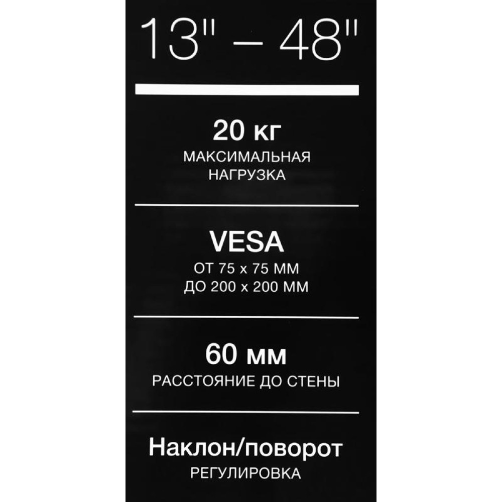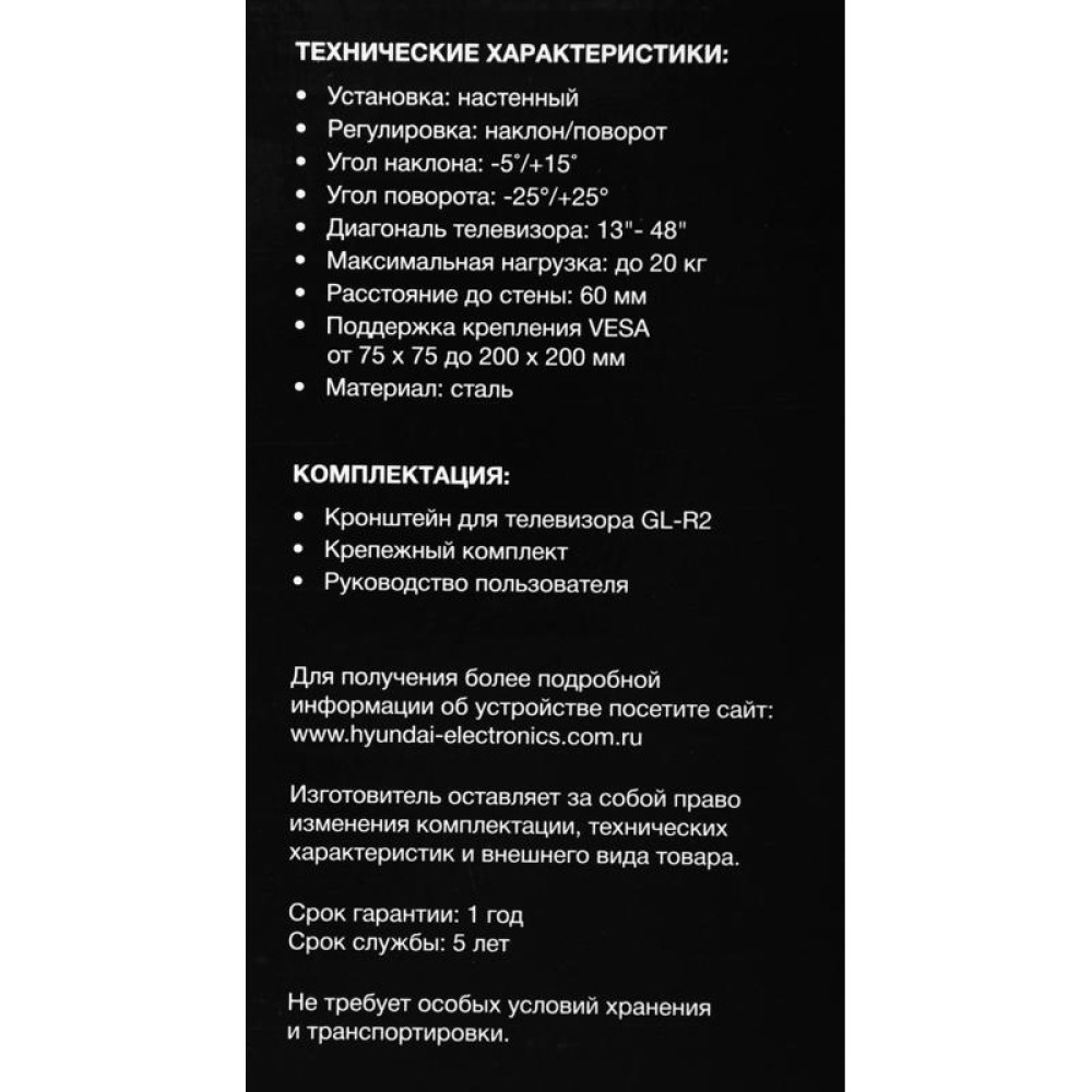 Кронштейн для телевизора Hyundai GL-R2 черный 13"-48" макс.20кг настенный поворот и наклон