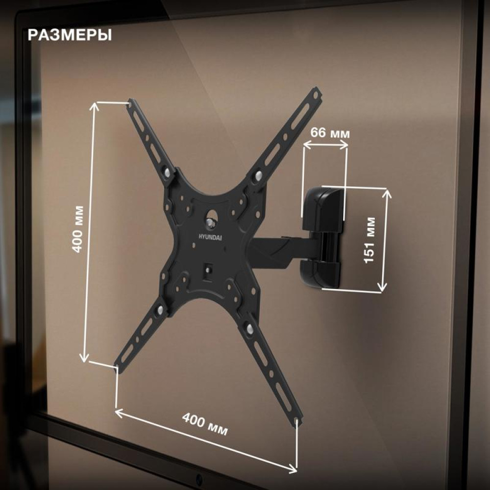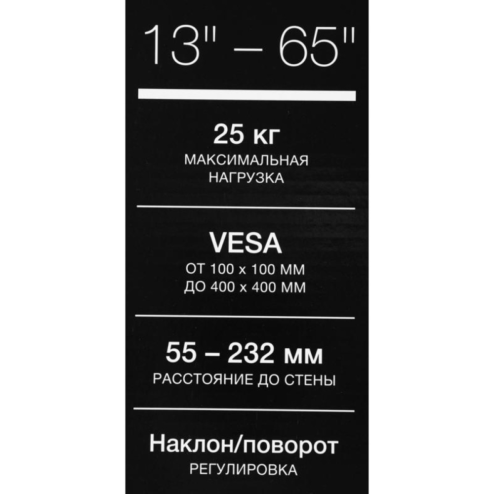 Кронштейн для телевизора Hyundai GL-R4 черный 13"-65" макс.25кг настенный поворот и наклон