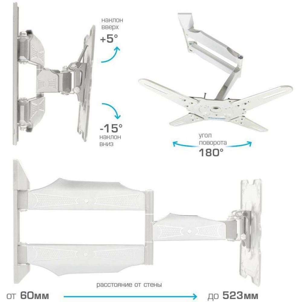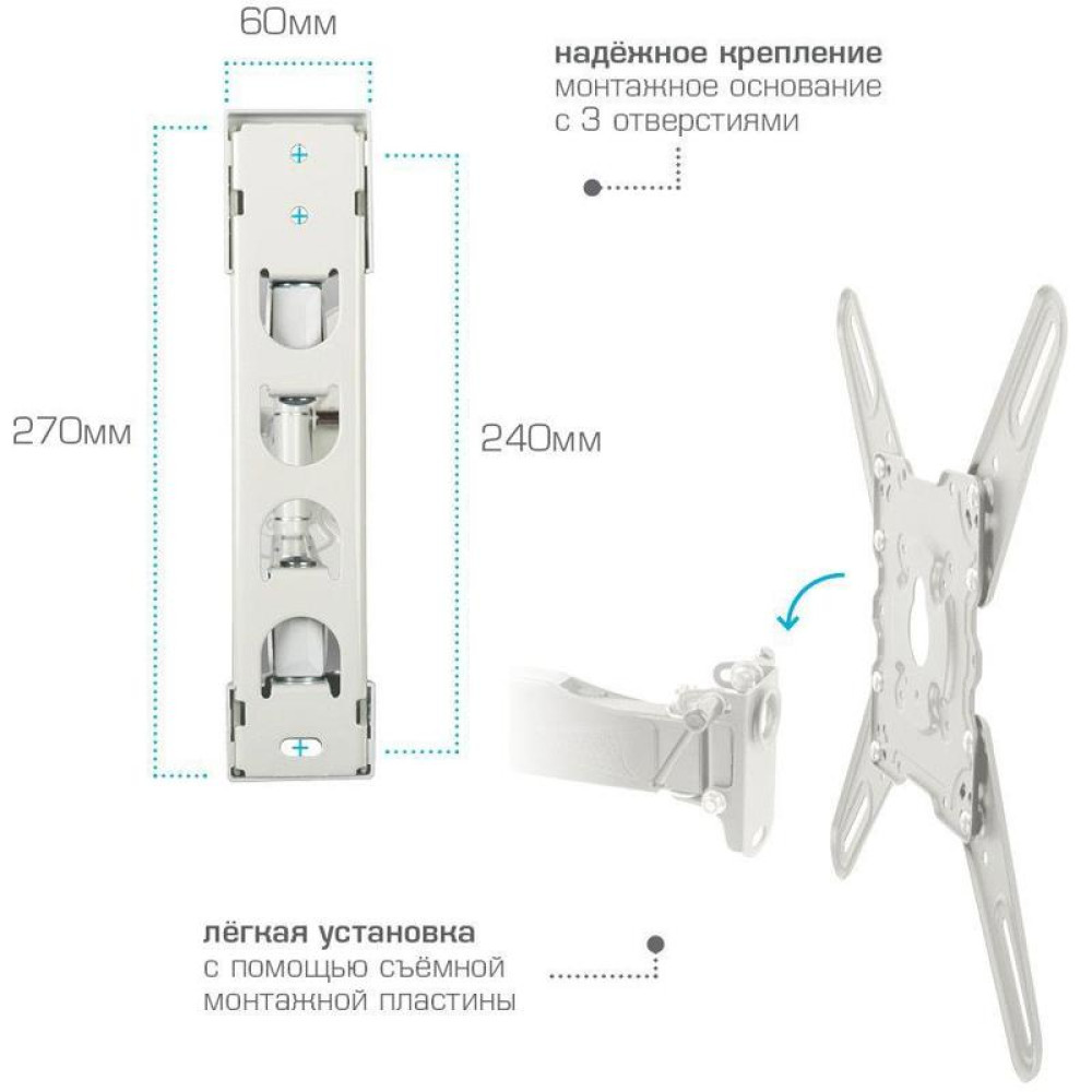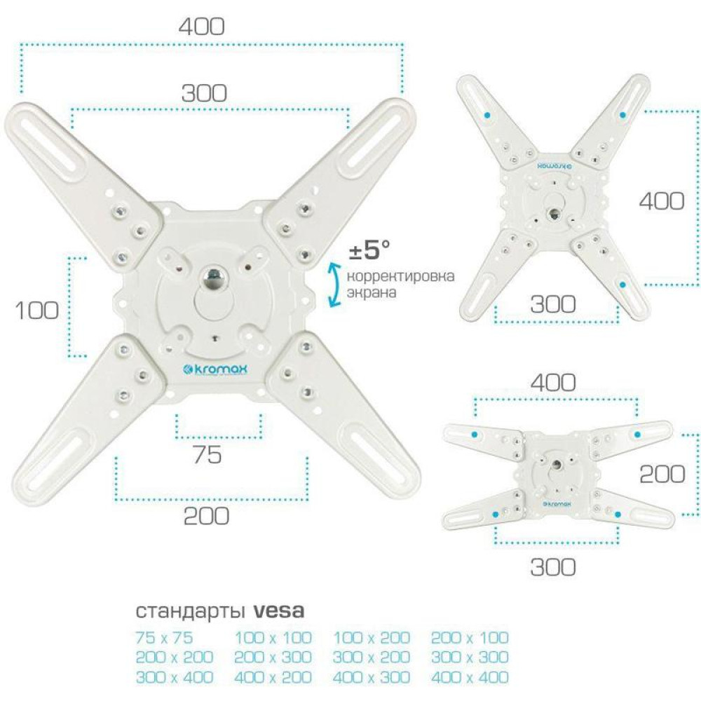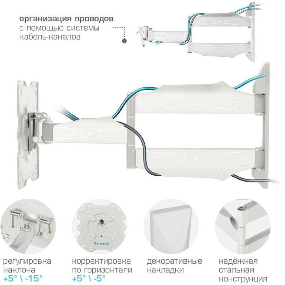 Кронштейн для телевизора Kromax ATLANTIS-40 белый 22"-65" макс.40кг настенный поворот и наклон