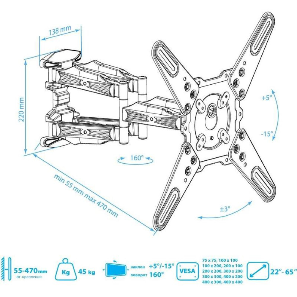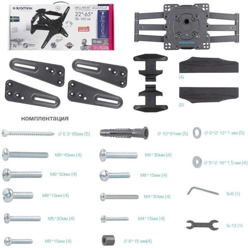 Кронштейн для телевизора Kromax ATLANTIS-45 темно-серый 22"-65" макс.45кг настенный поворот и наклон