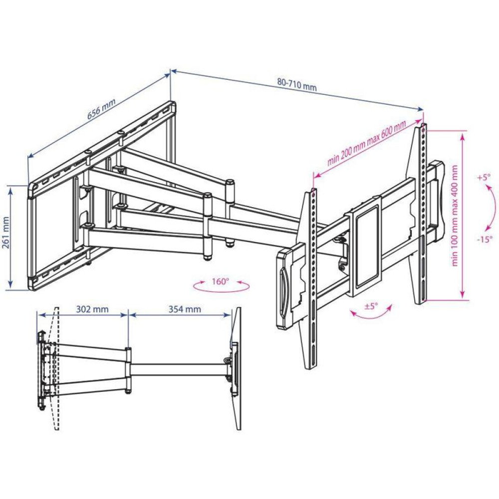 Кронштейн для телевизора Kromax ATLANTIS-70 черный 32"-75" макс.101кг настенный поворотно-выдвижной и наклонный