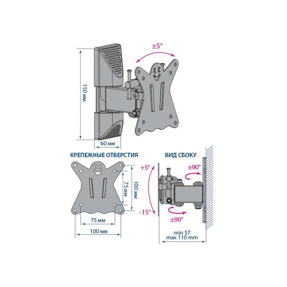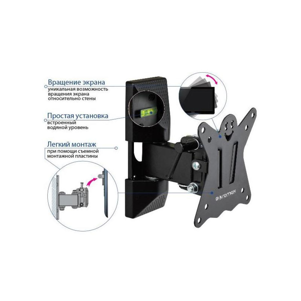 Кронштейн для телевизора Kromax CASPER-102 черный 10"-32" макс.25кг настенный поворот и наклон