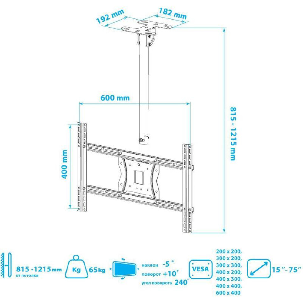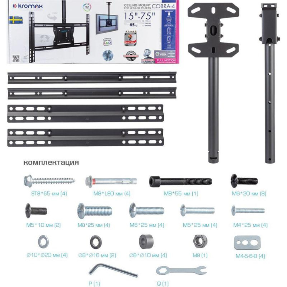 Кронштейн для телевизора Kromax COBRA-4 черный 15"-75" макс.65кг потолочный поворот и наклон