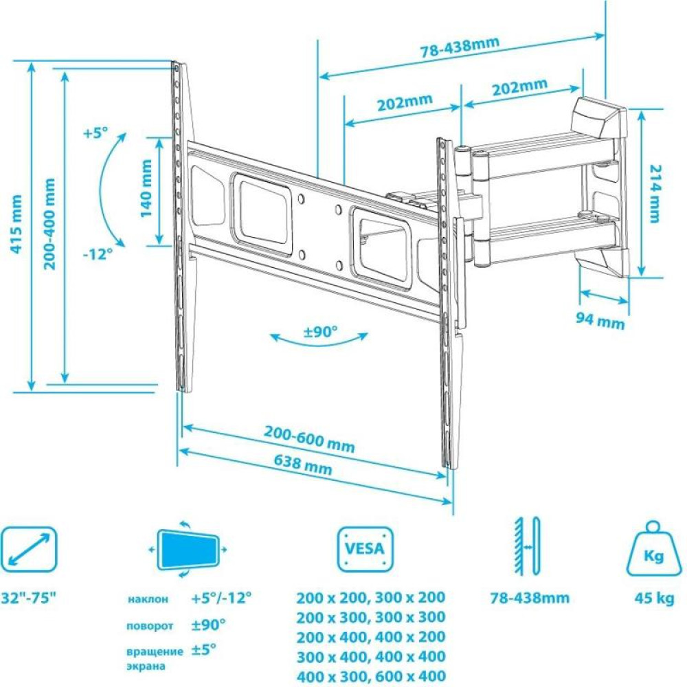 Кронштейн для телевизора Kromax CORBEL-11 титан 32"-75" макс.45кг настенный поворот и наклон