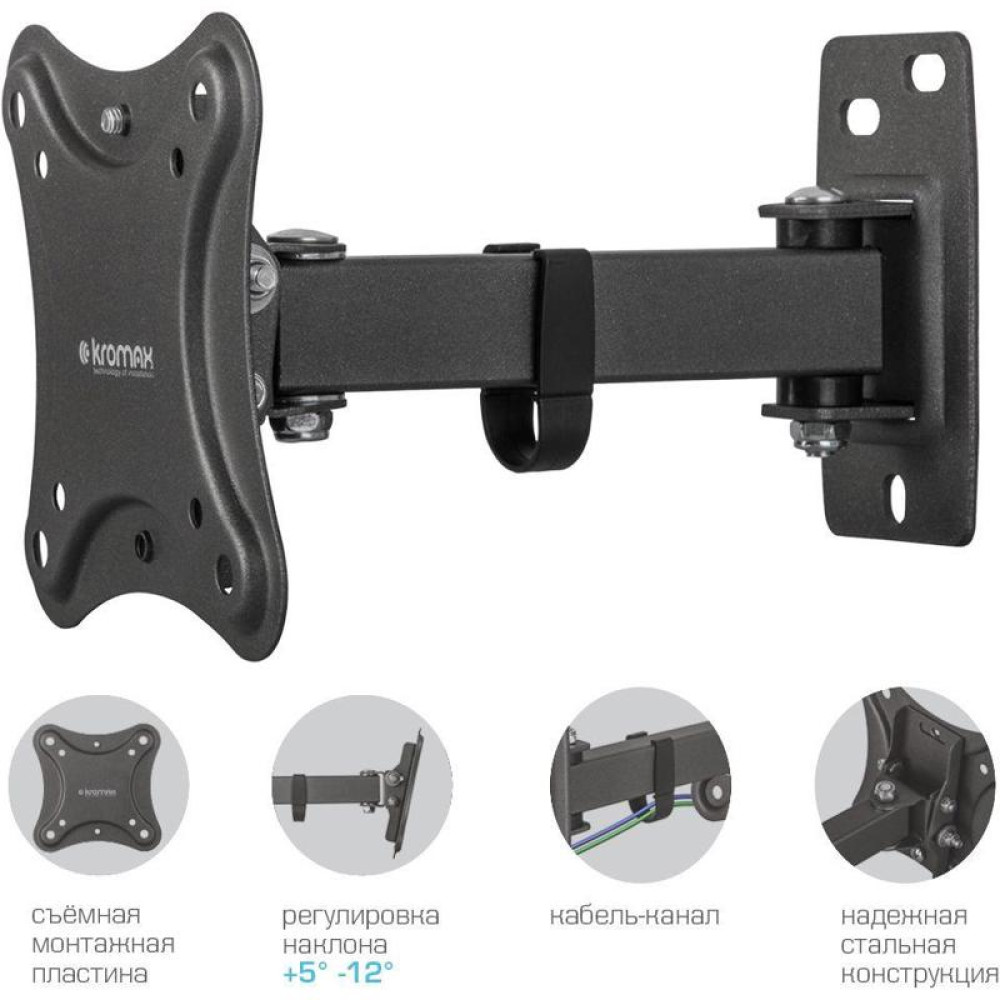Кронштейн для телевизора Kromax CORBEL-2 черный 10"-32" макс.25кг настенный поворот и наклон