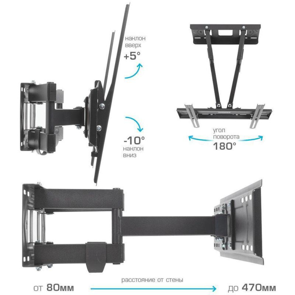 Кронштейн для телевизора Kromax PIXIS-L-2 черный 22"-65" макс.50кг настенный поворот и наклон