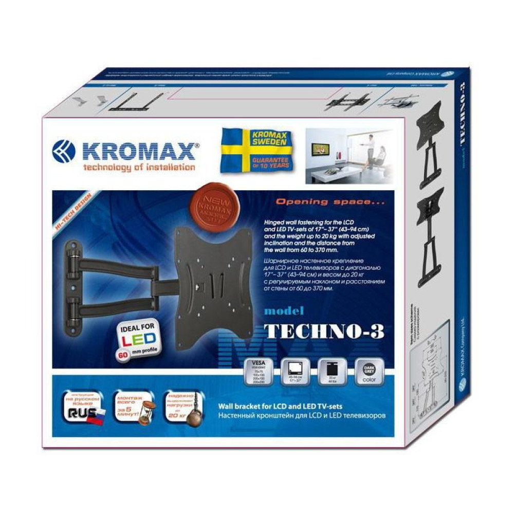 Кронштейн для телевизора Kromax TECHNO-3 белый 15"-40" макс.20кг настенный поворот и наклон