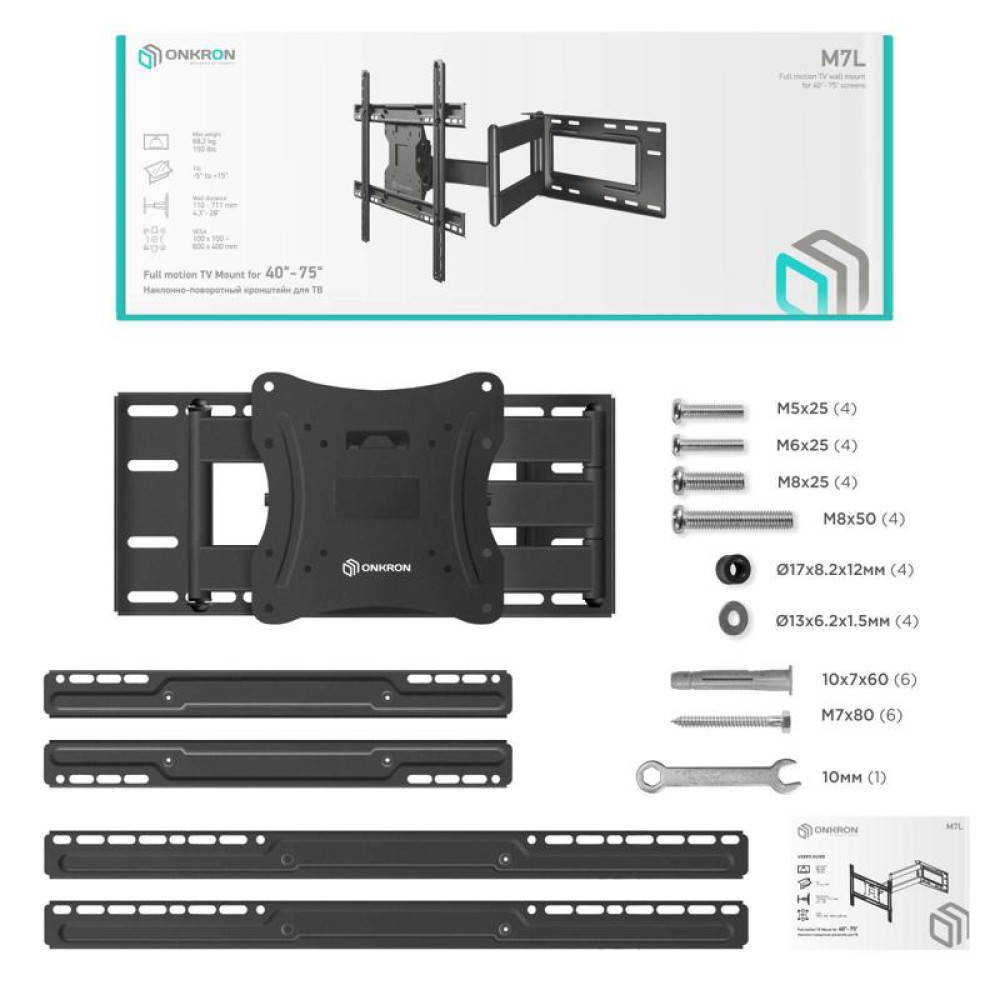 Кронштейн для телевизора Onkron M7L черный 40"-75" макс.68.2кг настенный поворот и наклон