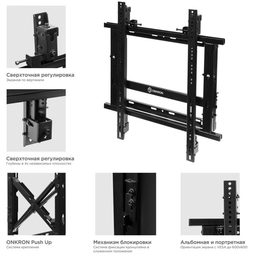 Кронштейн для телевизора Onkron PRO7G черный 50"-70" макс.50кг настенный наклонно-выдвижной
