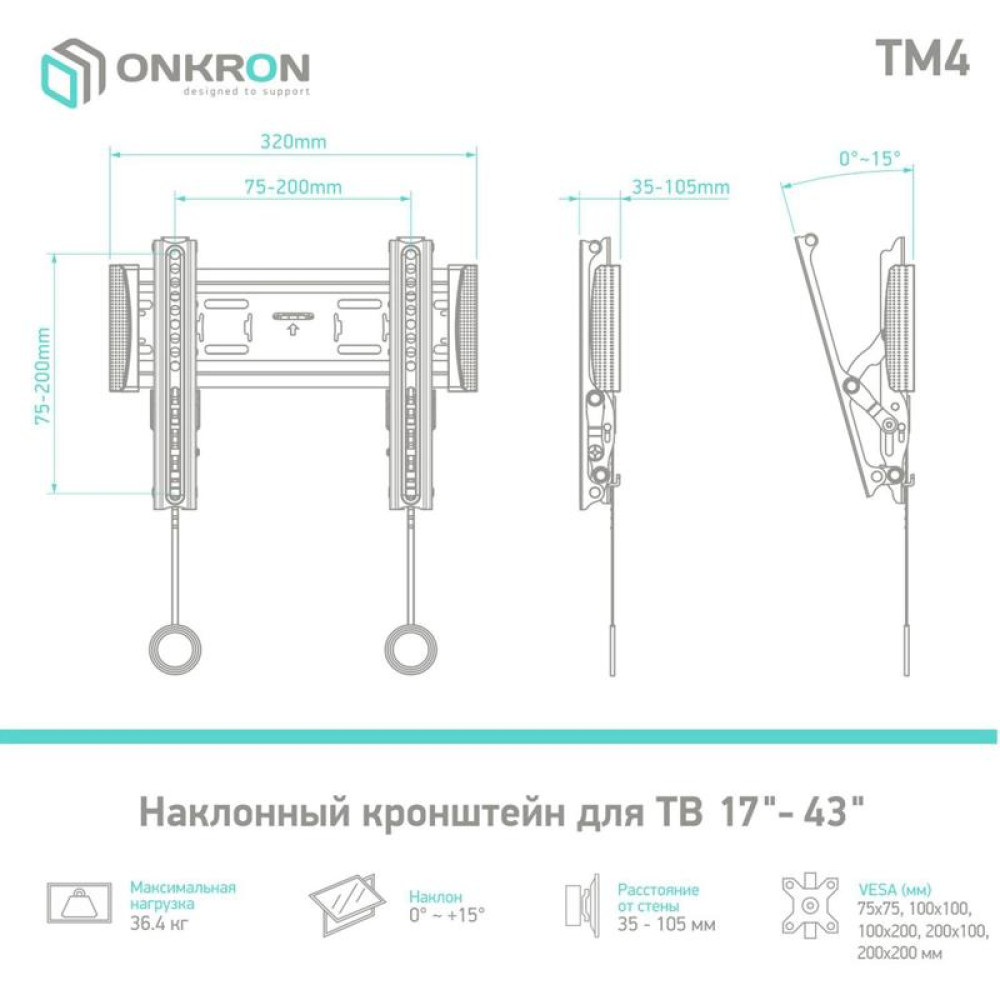 Кронштейн для телевизора Onkron TM4 черный 17"-43" макс.36.5кг настенный наклон