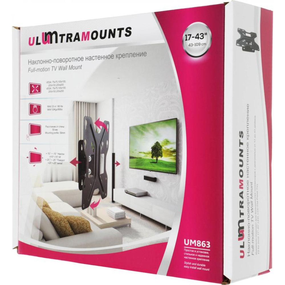 Кронштейн для телевизора Ultramounts UM863 черный 23"-42" макс.30кг настенный наклон