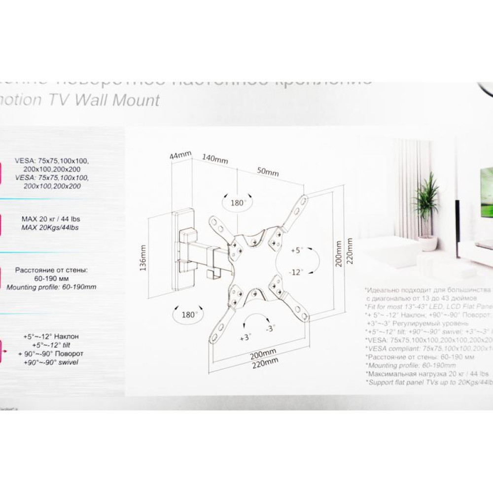 Кронштейн для телевизора Ultramounts UM864B черный 13"-42" макс.20кг настенный поворот и наклон