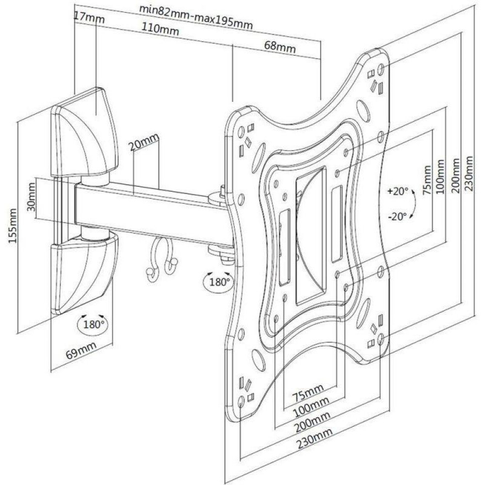 Кронштейн для телевизора Ultramounts UM865 черный 23"-42" макс.20кг настенный поворотно-выдвижной и наклонный