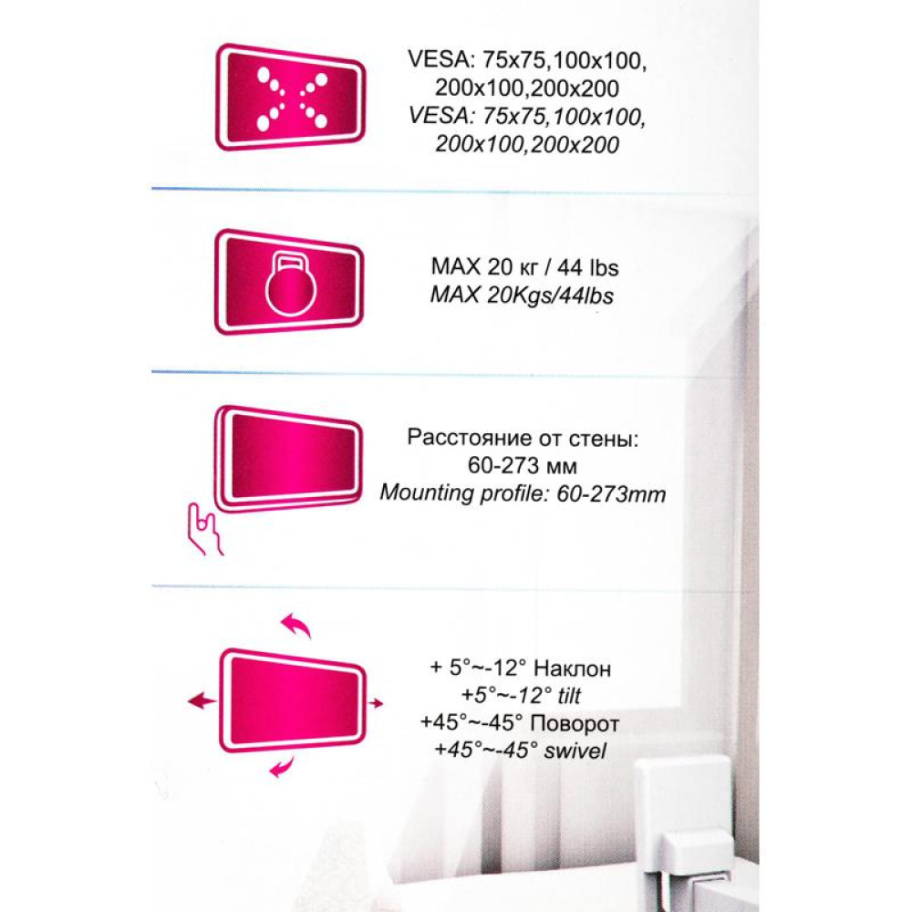 Кронштейн для телевизора Ultramounts UM866W белый 13"-42" макс.20кг настенный поворот и наклон