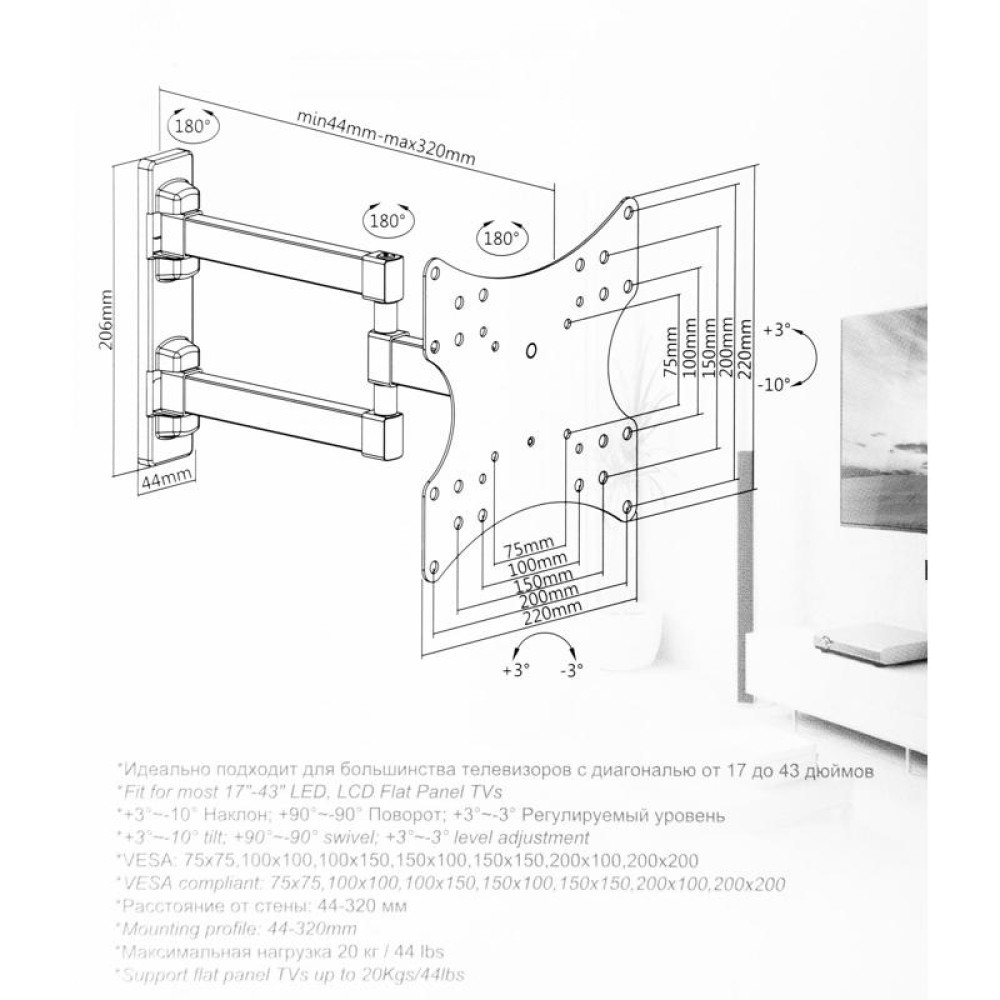 Кронштейн для телевизора Ultramounts UM867 черный 23"-42" макс.20кг настенный поворот и наклон