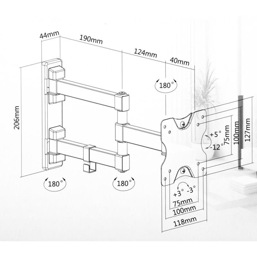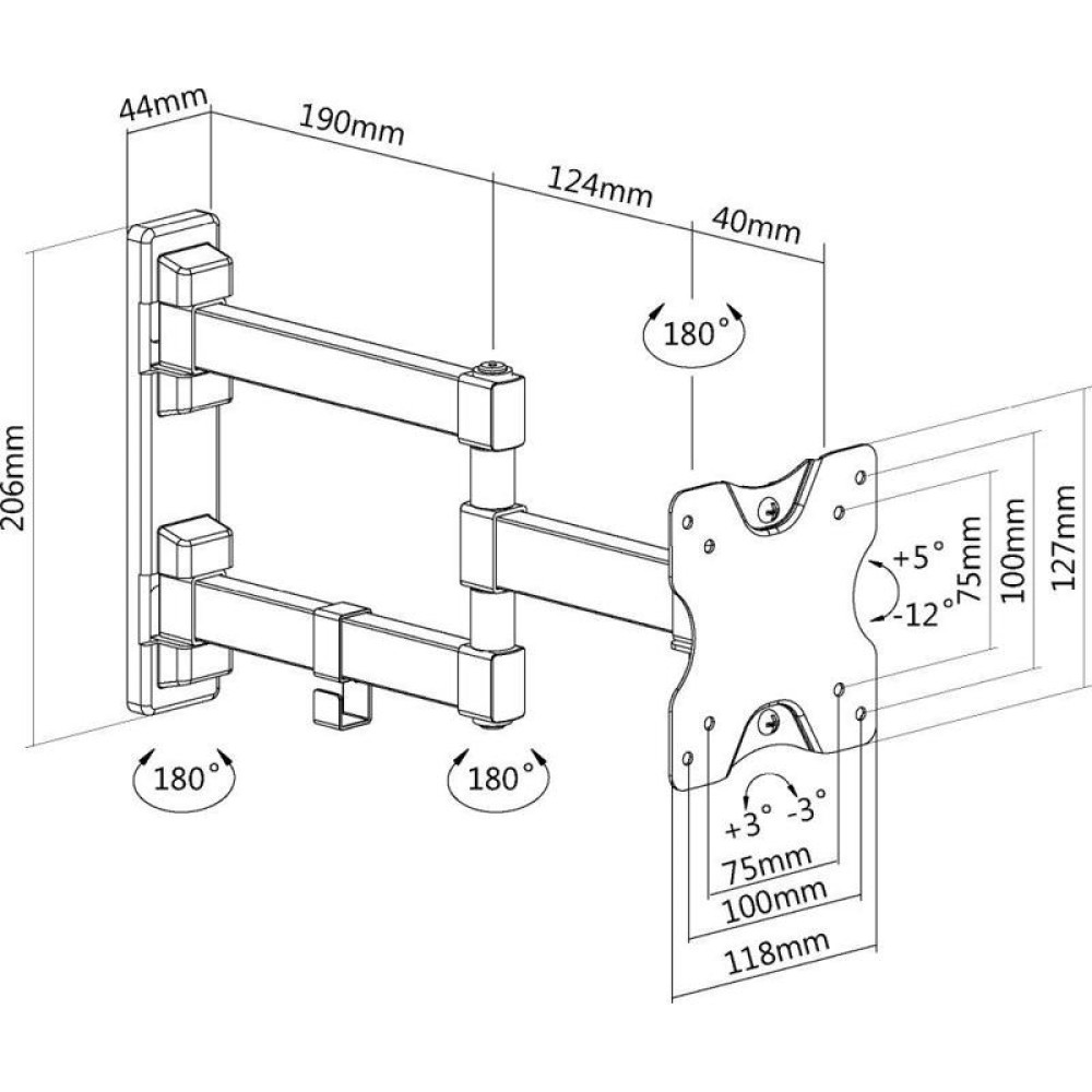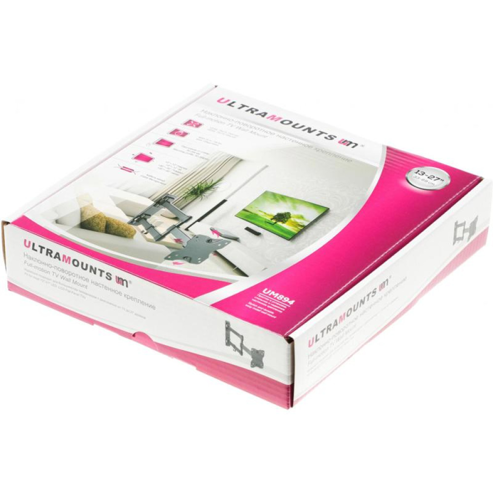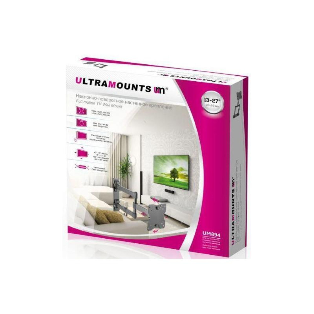 Кронштейн для телевизора Ultramounts UM894 черный 13"-27" макс.20кг настенный поворотно-выдвижной и наклонный
