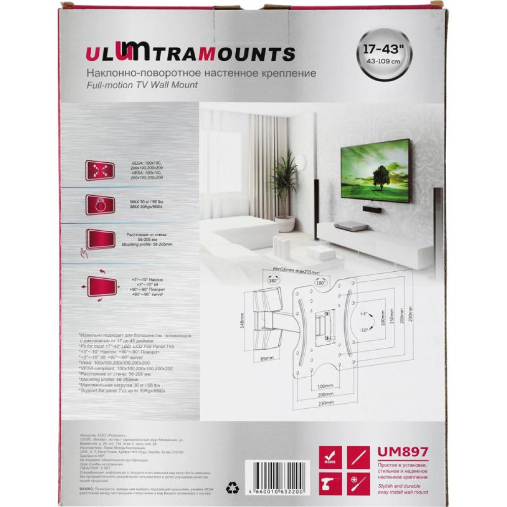 Кронштейн для телевизора Ultramounts UM897 черный 23"-42" макс.30кг настенный поворотно-выдвижной и наклонный