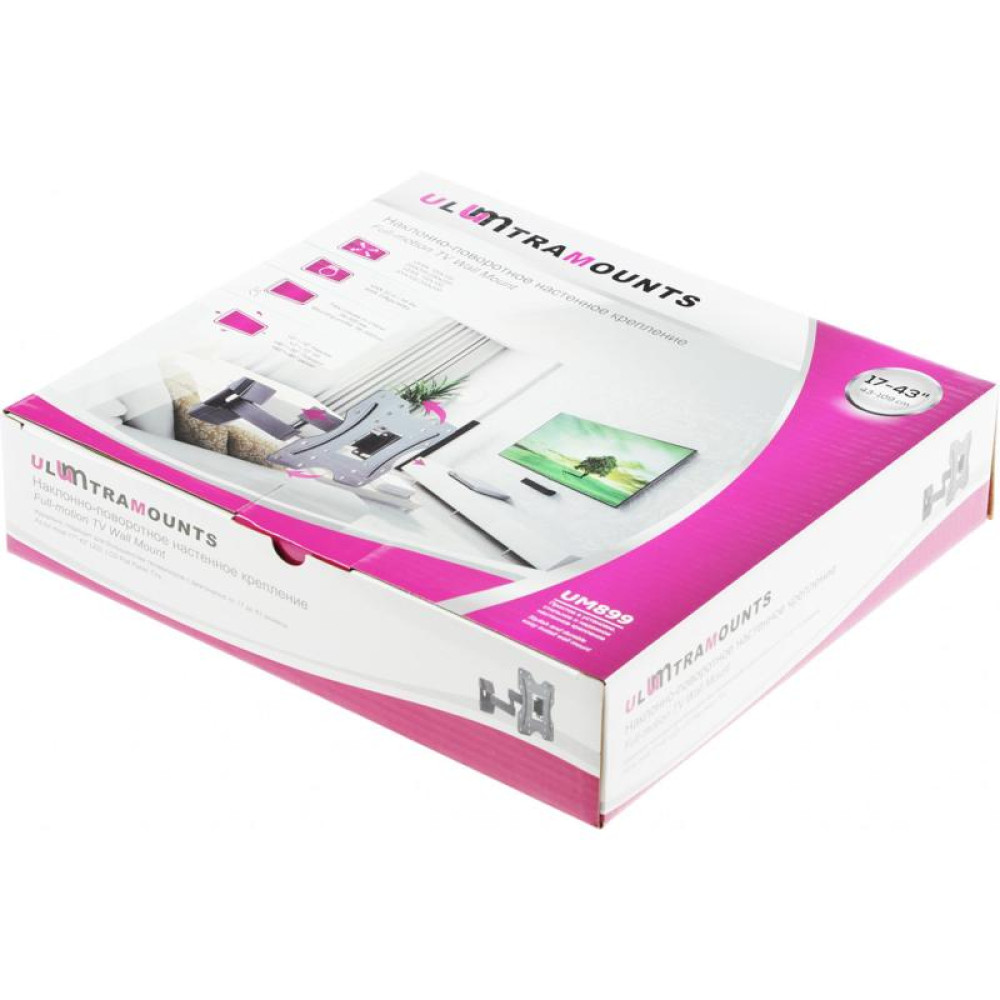 Кронштейн для телевизора Ultramounts UM899 черный 23"-43" макс.20кг настенный поворотно-выдвижной и наклонный