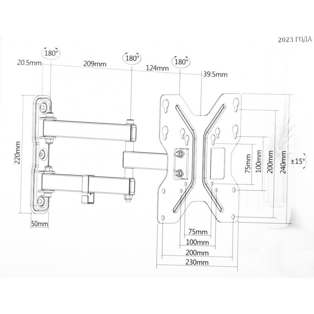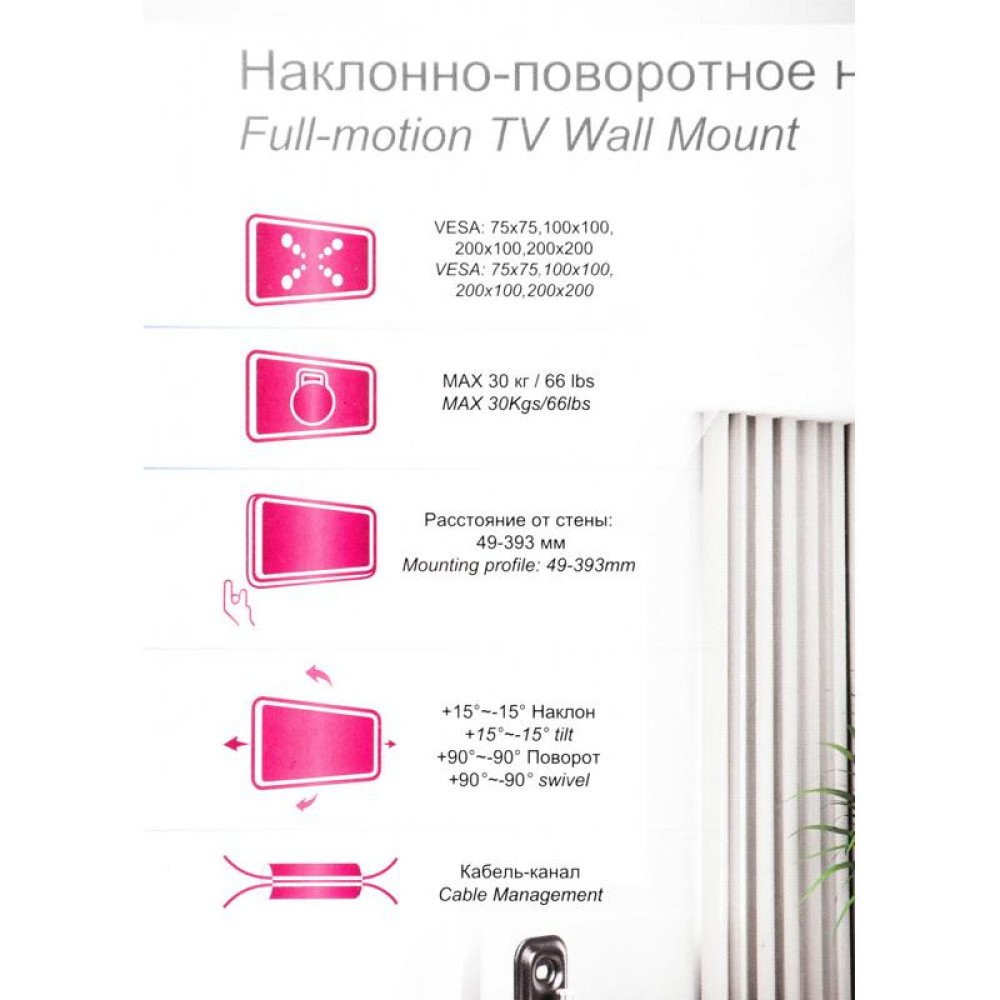 Кронштейн для телевизора Ultramounts UM900 черный 23"-43" макс.30кг настенный поворотно-выдвижной и наклонный