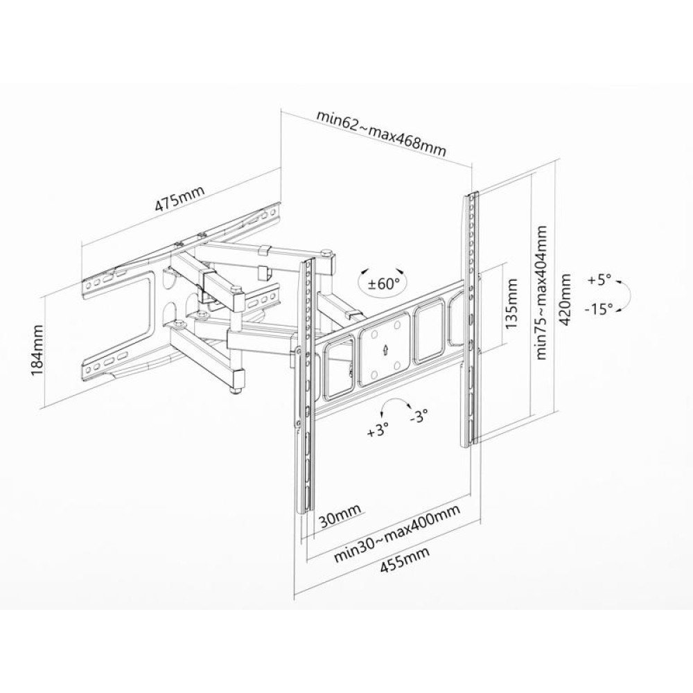 Кронштейн для телевизора Ultramounts UM908 черный 32"-75" макс.40кг настенный поворотно-выдвижной и наклонный