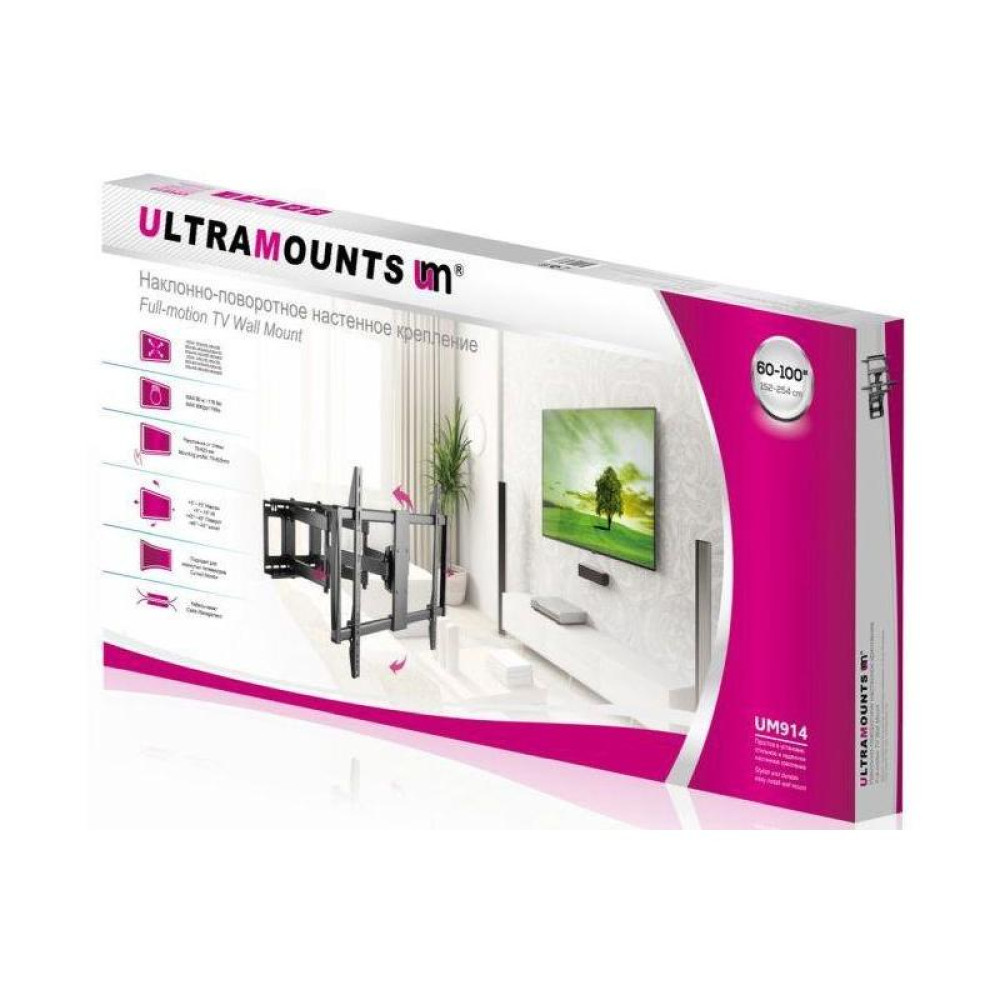 Кронштейн для телевизора Ultramounts UM914 черный 60"-100" макс.80кг настенный поворотно-выдвижной и наклонный
