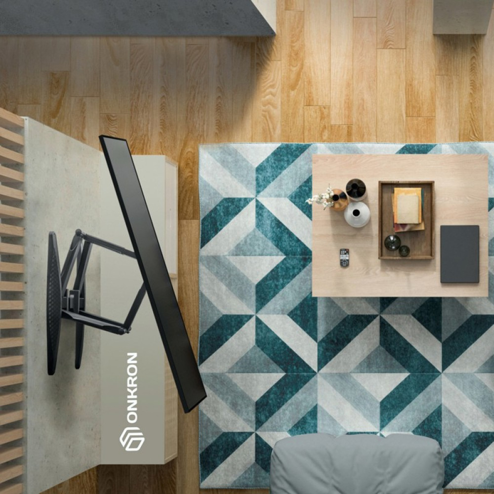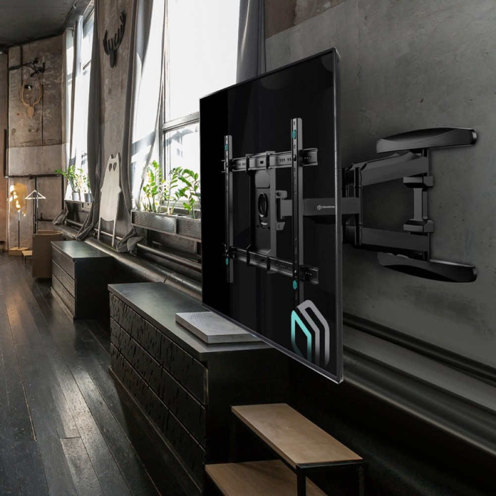 Он обеспечивает возможность маневренного поворота кронштейна на угол до 140°. Для поворота телевизора Вам не нужно использовать дополнительных приспособлений или прилагать усилия. Вы сможете повернуть ТВ-панель и изменить расстояние от стены лёгким движением руки, при этом телевизор зафиксируется в настроенном положении.