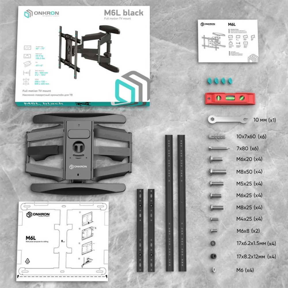 Он обладает широчайшими возможностями наклона и поворота, предусматривает регулировку экрана по вертикали и горизонтали. Крепкий и прочный, при этом элегантный кронштейн белого цвета станет прекрасным дополнением домашнего интерьера. ONKRON M6L white – это современное и стильное решение - с ним Ваш ТВ будет в тренде.